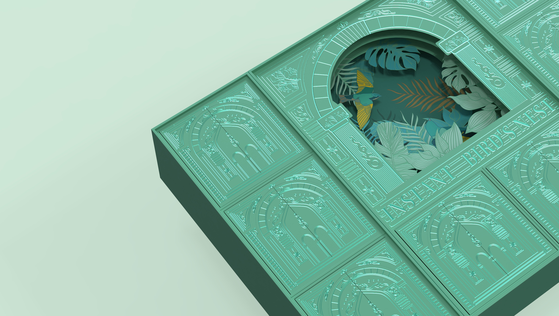上好燕即食燕窩禮盒,是智圓行方為葛蘭瑞克在山姆會員店特渠開發的禮盒產品,設計師為其定義主題為“熱帶植物的靜謐從容”,以清新淡雅的薄荷綠,詮釋春夏的活潑以及優雅健康的形象,體現“下午茶的優雅時光”。